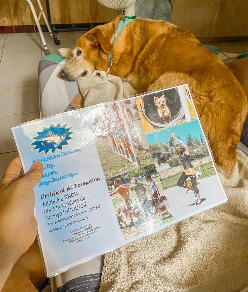 En 2022, pour approfondir mes connaissances sur le comportement canin, j’ai passé une formation en cynologie canine, puis, j’ai fait 1 an de stage dans un club canin dans laquelle j’étais déjà membre avec ma chienne pour de l’agility.